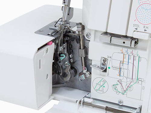 Оверлок позволяет шить 4, 3, а также 2 нитями с помощью специального конвертера. Регулировка натяжения нити, длины стежка, дифференциала транспортера и давления лапки поможет оптимально настроить машину и выполнить идеальный шов.
